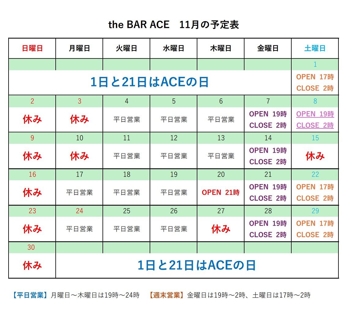 11月の予定ですが、少々変更いたしました。 よろしくお願い致します。