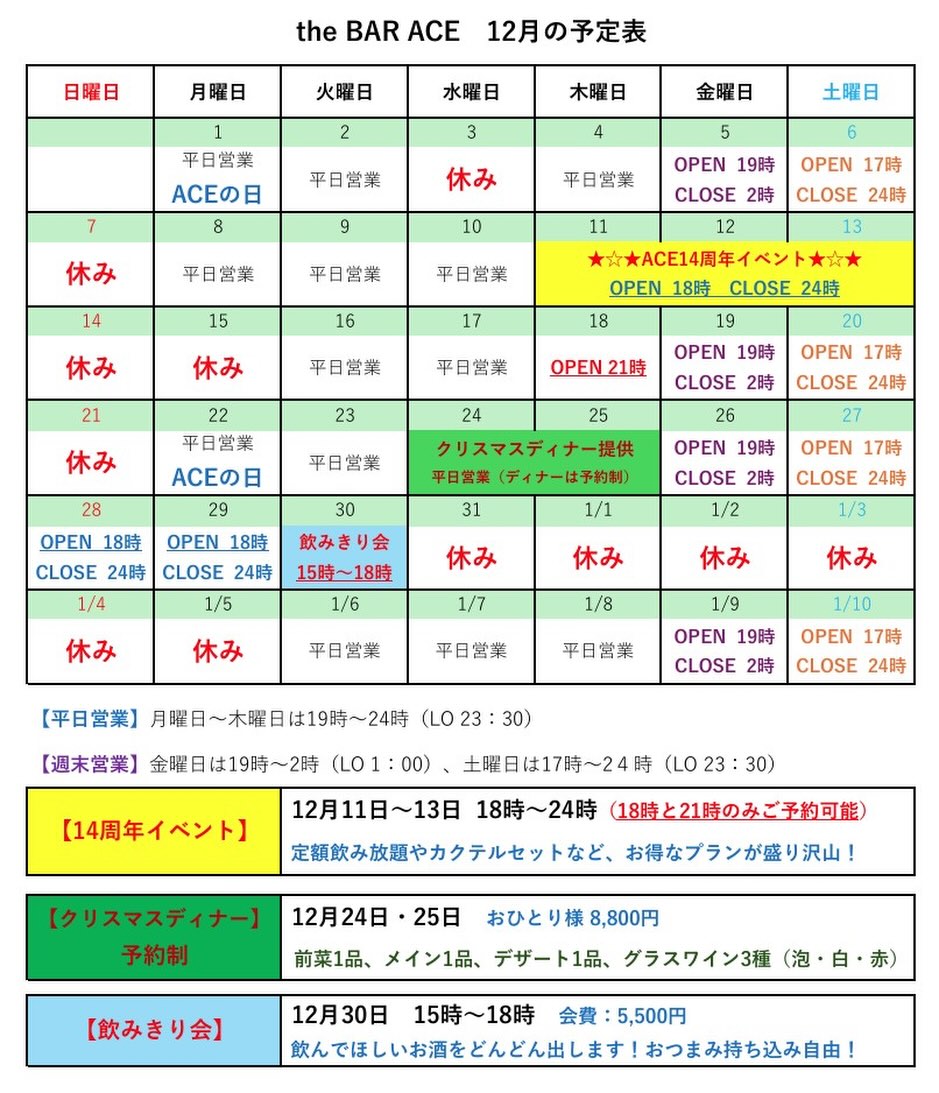 #池袋ACE #イベント #クリスマスディナー #14周年