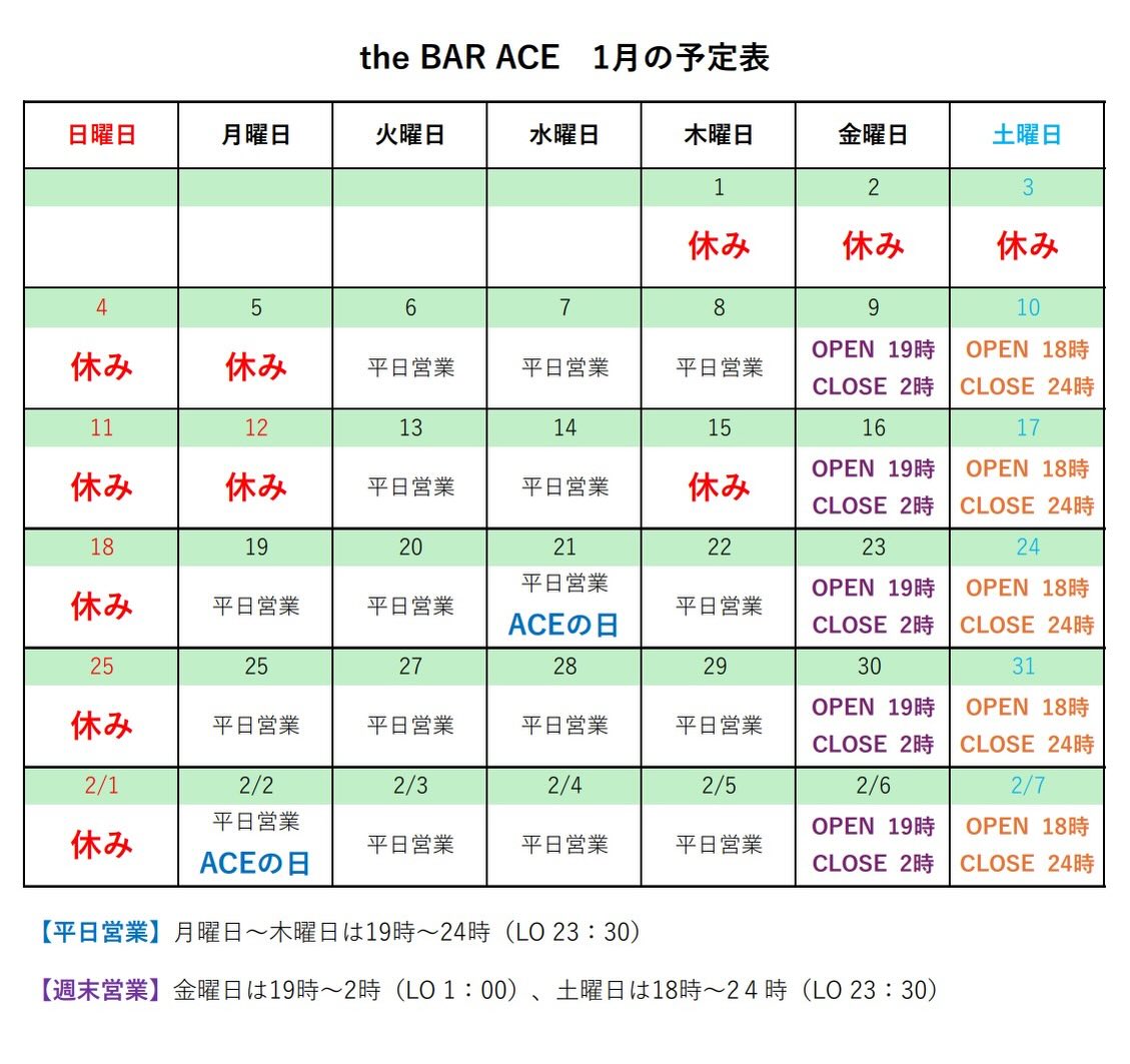 遅くなりましたが1月の予定です。